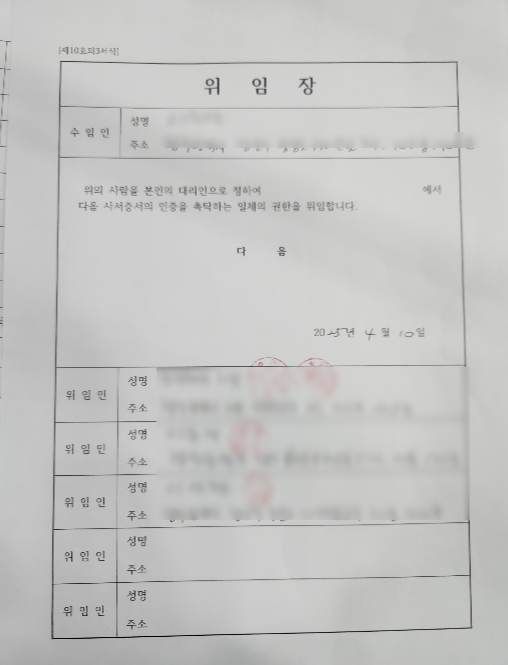 - 위임장, 인감증명서