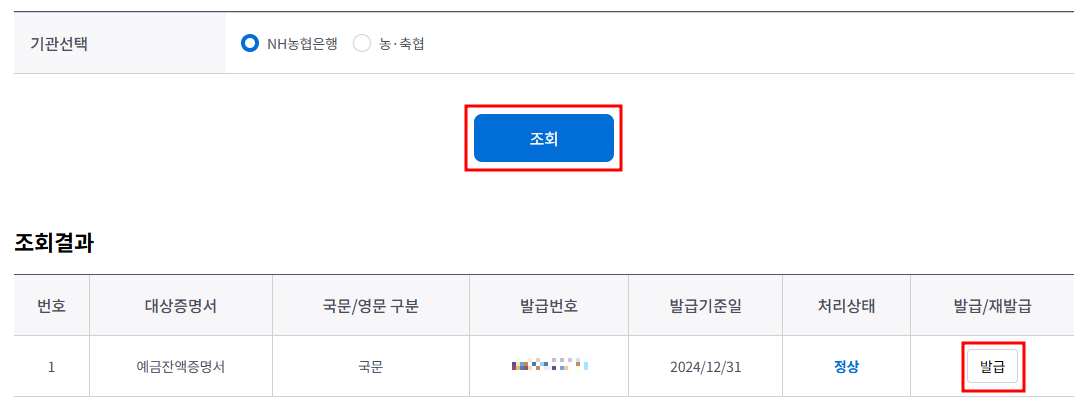 농협 예금잔액증명서 발급 방법