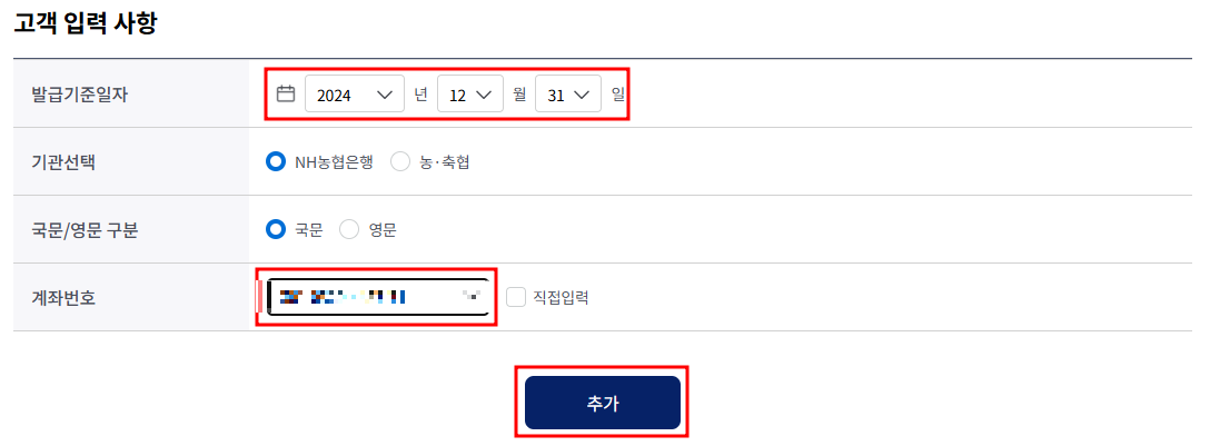 발급기준일자와 계좌번호를 입력해 주세요.