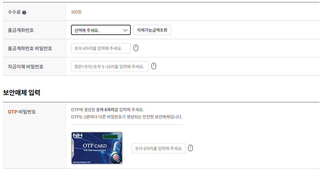수수료는 500원 입니다.